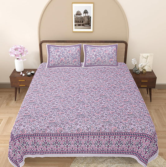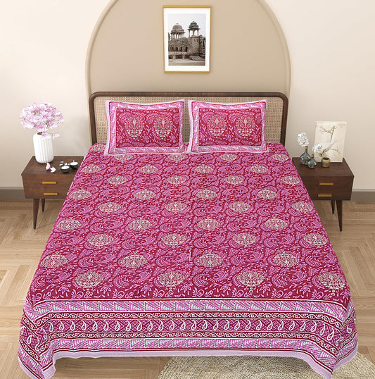 Pink Cotton 240 TC Jaipuri Print Double Bedsheet With 2 Pillow Covers (ADB1387)