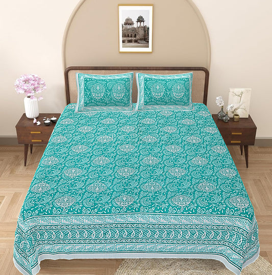 Turquoise Blue Ethnic Motifs 240 TC Cotton 1 King Bedsheet with 2 Pillow Covers (ADB1480)