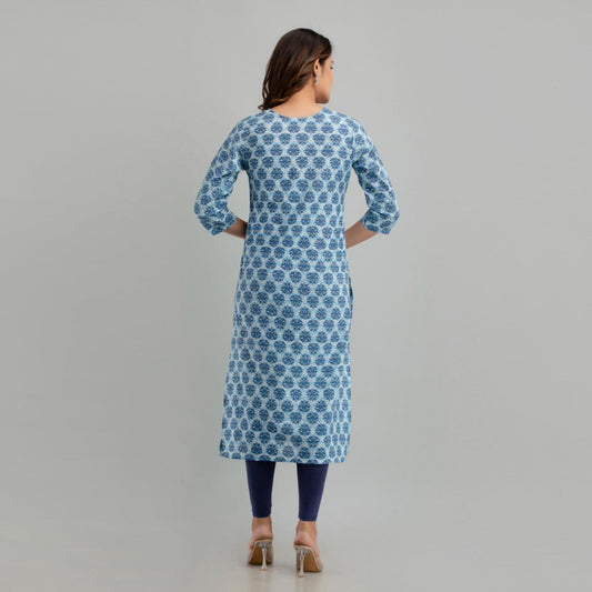 Women Light Blue Floral Print Straight Kurta (SHKUP1221)