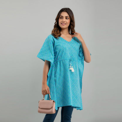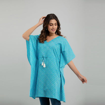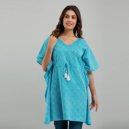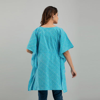 Light Blue Leheriya Print Cotton Kaftan Dress (SHKUP1224)
