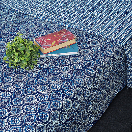 Indigo Blue Floral Print 240 TC Cotton Double Bed Dohar (SHKR1023)