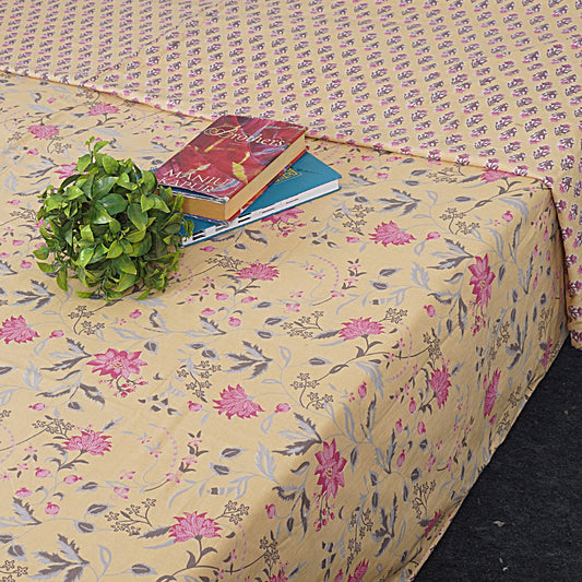 Beige Floral Print 240 TC Cotton Double Bed Dohar (SHKR1026)