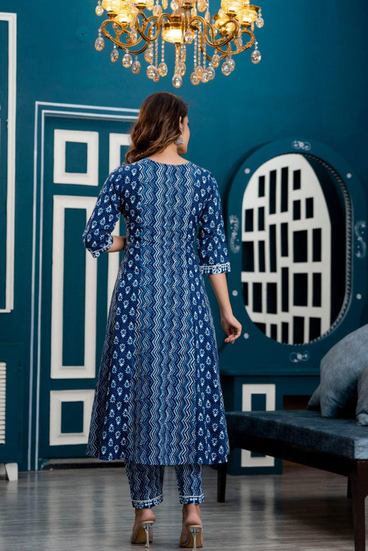Women Indigo Blue Ethnic Motifs Printed Anarkali Kurta with Trousers & Dupatta