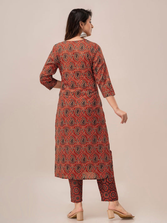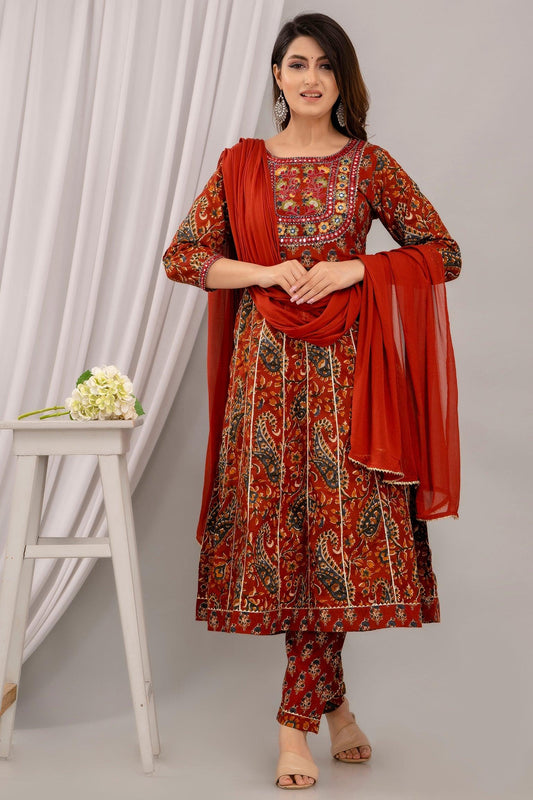 Maroon Paisley Print with Yoke Design A-Line Kurta with Trousers & Dupatta