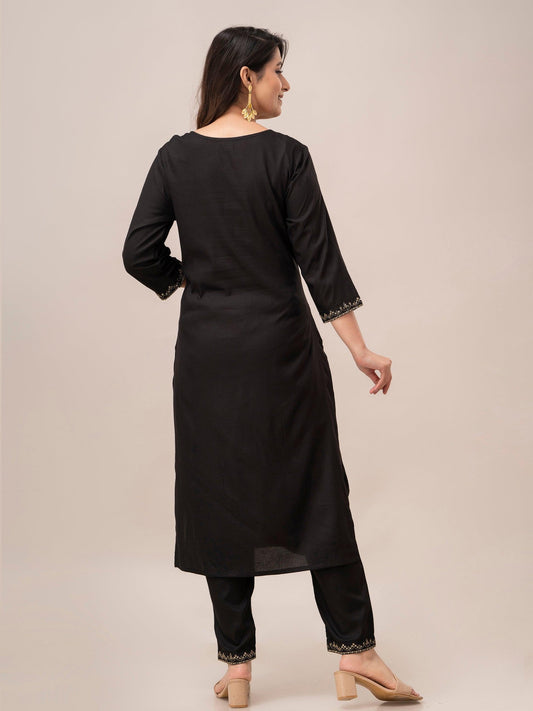 Women Black Sequinned Yoke Design Kurta with Trousers