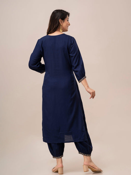 Women Blue Sequinned Yoke Design Kurta with Pyjamas