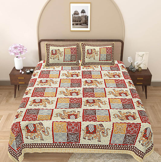 Red Ethnic Motifs 240 TC Cotton 1 King Bedsheet with 2 Pillow Covers (ADB1477)