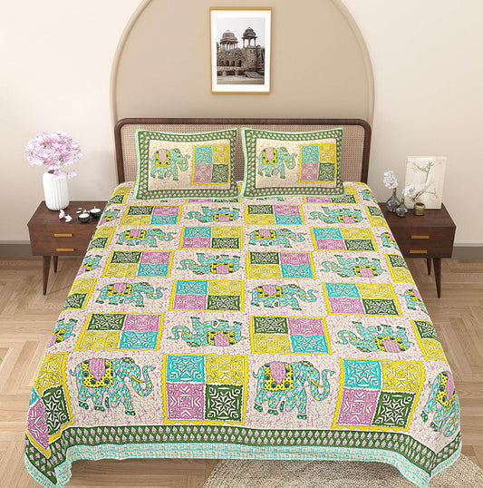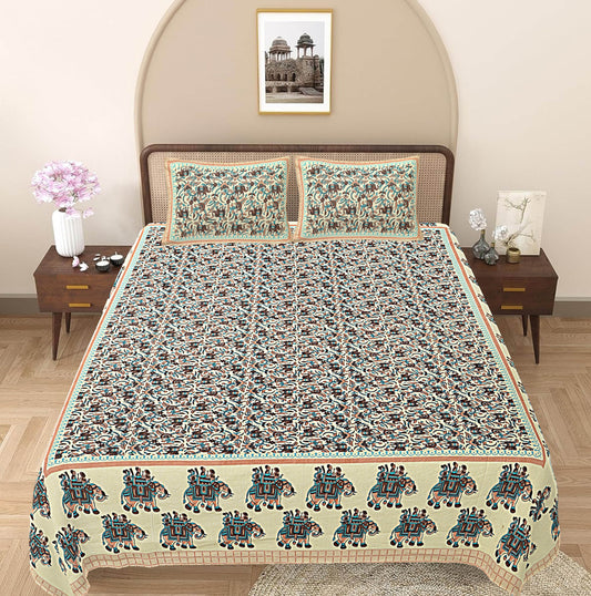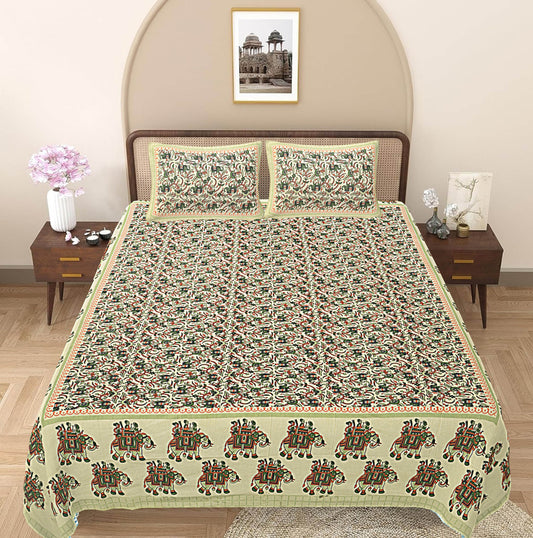 Green Ethnic Motifs 240 TC Cotton 1 King Bedsheet with 2 Pillow Covers (ADB1481)