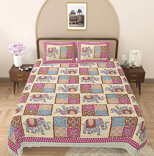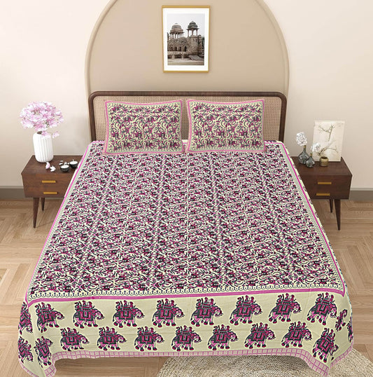 Pink Ethnic Motifs 240 TC Cotton 1 King Bedsheet with 2 Pillow Covers (ADB1479)