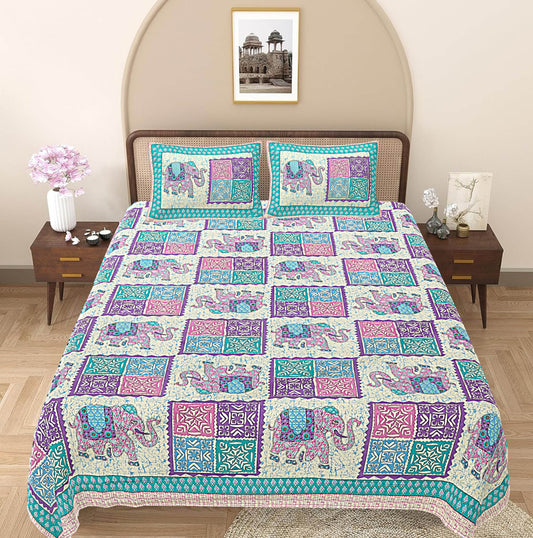 Turquoise Blue Ethnic Motifs 240 TC Cotton 1 King Bedsheet with 2 Pillow Covers (ADB1482)
