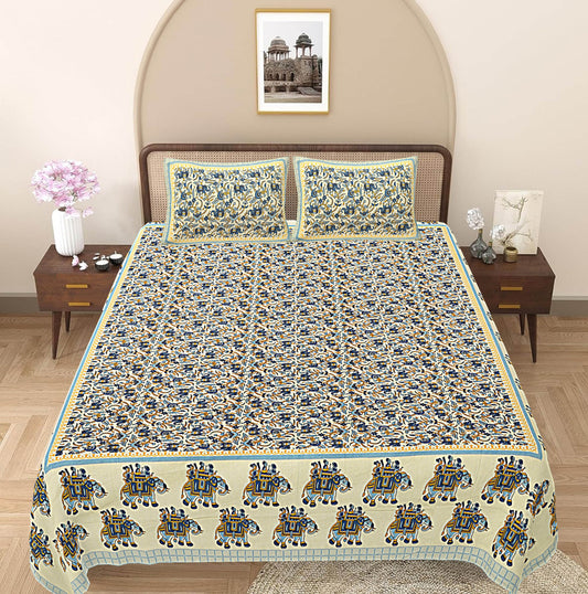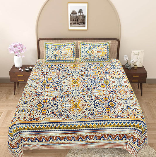 Blue Ethnic Motifs 240 TC Cotton 1 King Bedsheet with 2 Pillow Covers (ADB1484)