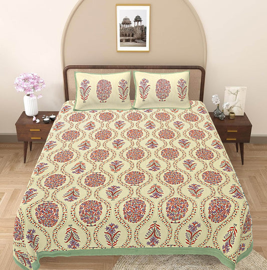 Green & Red Floral 240 TC Cotton 1 King Bedsheet with 2 Pillow Covers (ADB1485)