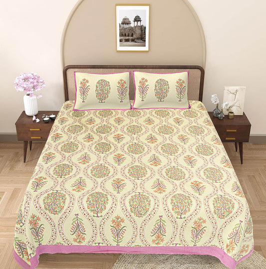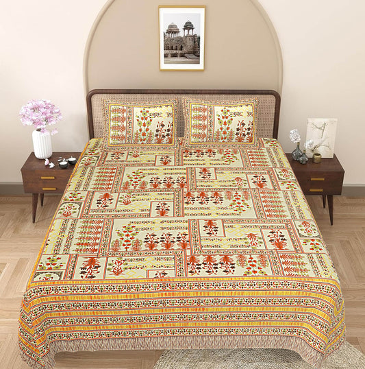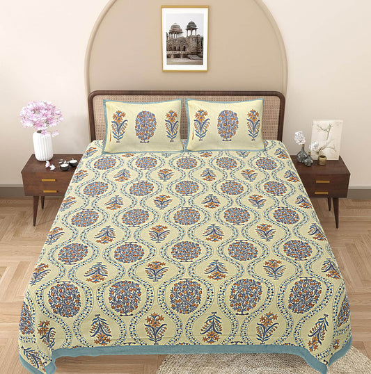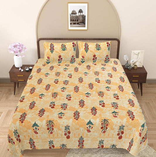 Yellow Floral 240 TC Cotton 1 King Bedsheet with 2 Pillow Covers (ADB1491)