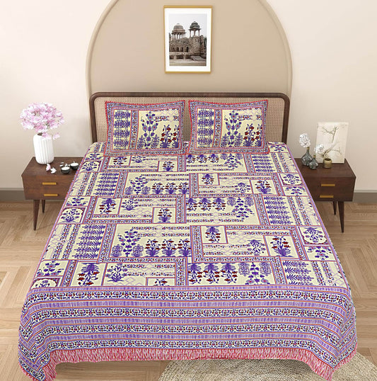 Purple Floral 240 TC Cotton 1 King Bedsheet with 2 Pillow Covers (ADB1489)