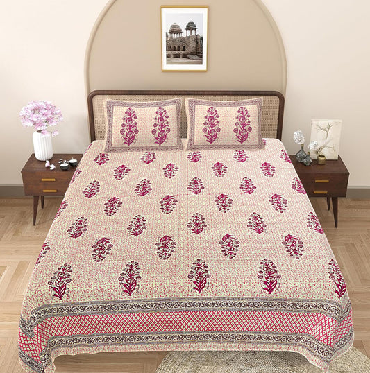 Pink Floral 240 TC Cotton 1 Super King Bedsheet with 2 Pillow Covers (SHKV1097)