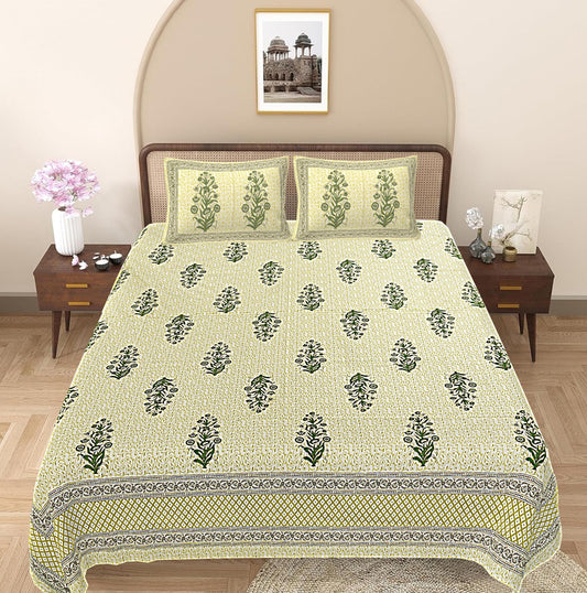 Green Floral 240 TC Cotton 1 Super King Bedsheet with 2 Pillow Covers (SHKV1108)