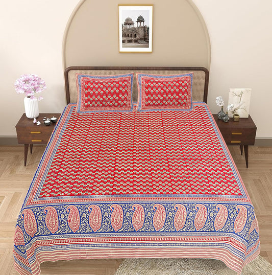 Red Paisley 240 TC Cotton 1 Super King Bedsheet with 2 Pillow Covers (SHKV1099)