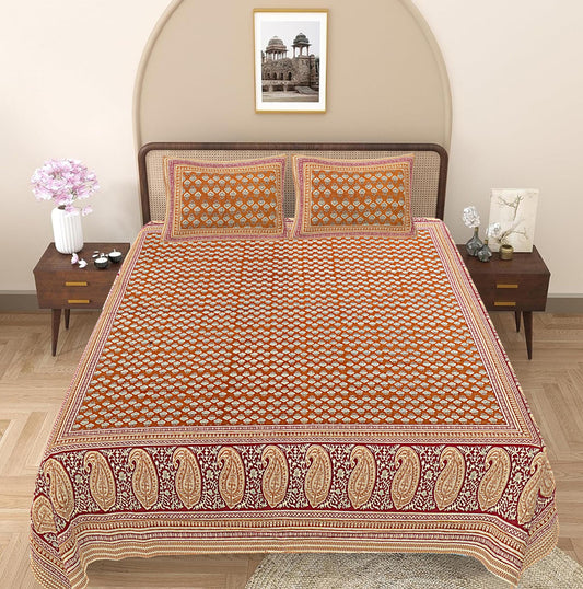 Brown Paisley 240 TC Cotton 1 Super King Bedsheet with 2 Pillow Covers (SHKV1101)
