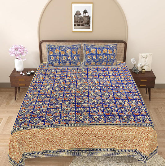 Blue Floral 240 TC Cotton 1 Super King Bedsheet with 2 Pillow Covers (SHKV1105)