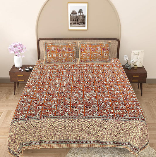 Brown Floral 240 TC Cotton 1 Super King Bedsheet with 2 Pillow Covers (SHKV1106)