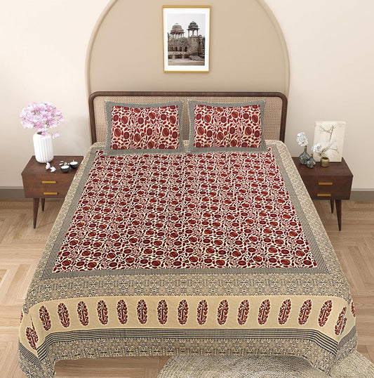 Maroon Floral 240 TC Cotton 1 Super King Bedsheet with 2 Pillow Covers (SHKV1103)
