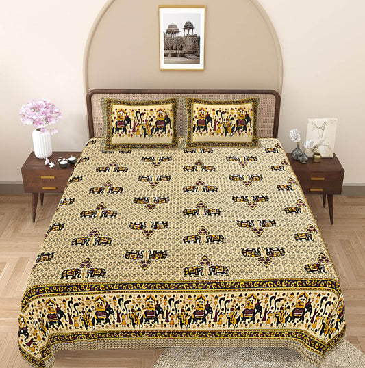 Yellow & Black Ethnic Motifs 240 TC Cotton 1 Super King Bedsheet with 2 Pillow Covers (SHKV1074)