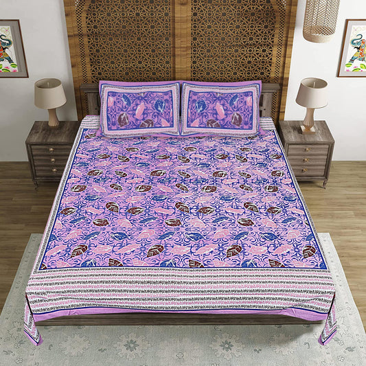 Purple Cotton 240 TC Jaipuri Print Double Bedsheet With 2 Pillow Covers (ADB1379)