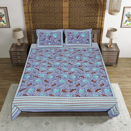 Blue Cotton 240 TC Jaipuri Print Double Bedsheet With 2 Pillow Covers (ADB1388)