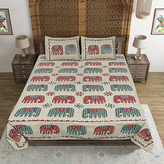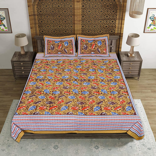 Multicolor Cotton 240 TC Jaipuri Print Double Bedsheet With 2 Pillow Covers (ADB1392)