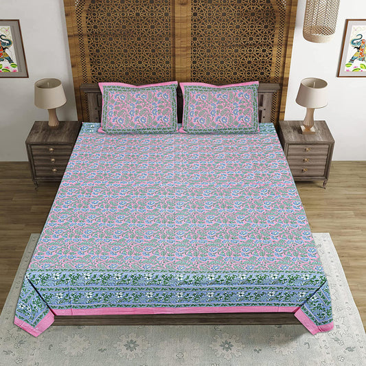 Pink Cotton 240 TC Jaipuri Print Double Bedsheet With 2 Pillow Covers (ADB1387)