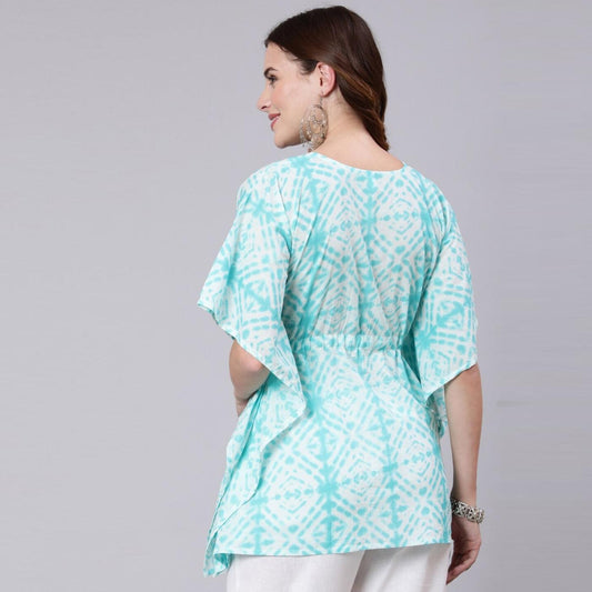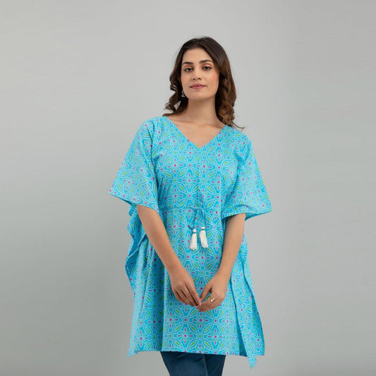 Light Blue Tie And Dye Print Cotton Kaftan Dress (SHKUP1207)