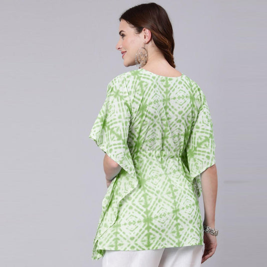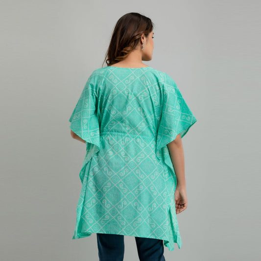 Light Green Tie And Dye Print Cotton Kaftan Dress (SHKUP1208)
