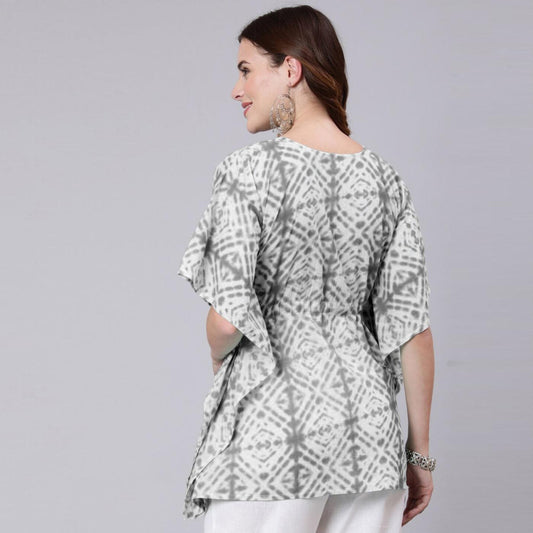 Grey Tie And Dye Print Cotton Kaftan Dress (SHKUP1209)