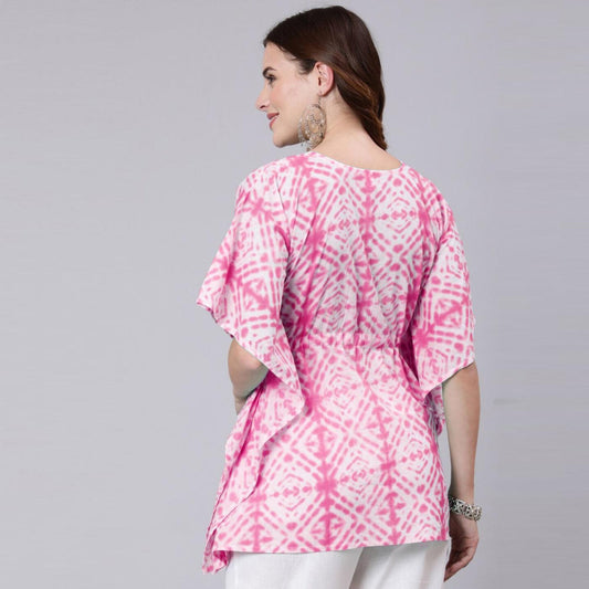 Pink Tie And Dye Print Cotton Kaftan Dress (SHKUP1210)