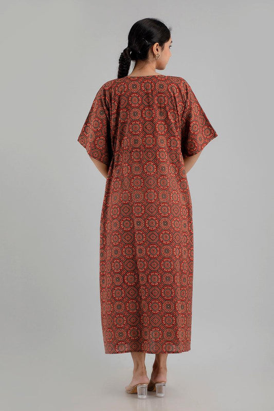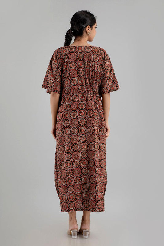 Maroon Floral Print Pure Cotton Kaftan Maxi Ethnic Dress - SHKUP1244