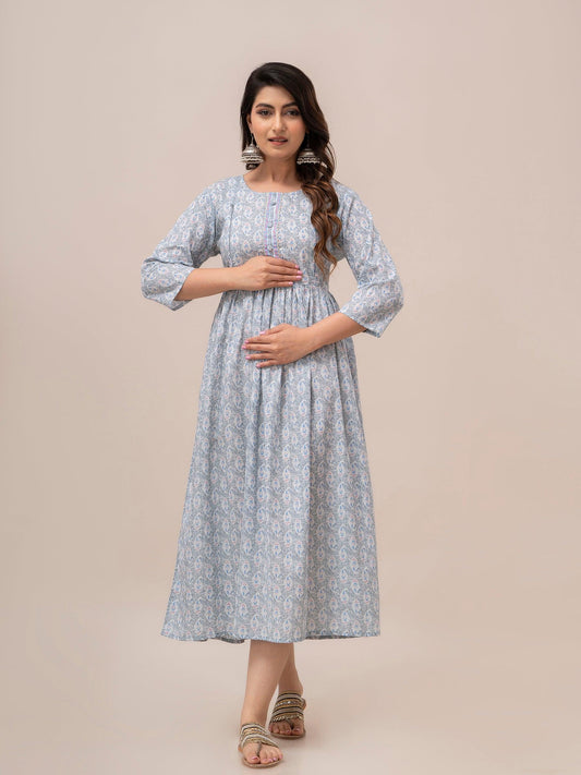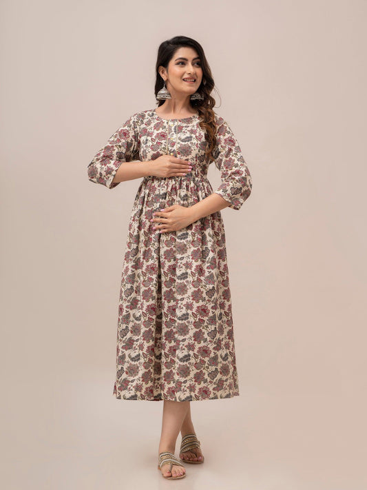 Women Floral Printed Maternity Cotton Maxi Dress - SHKUP1296