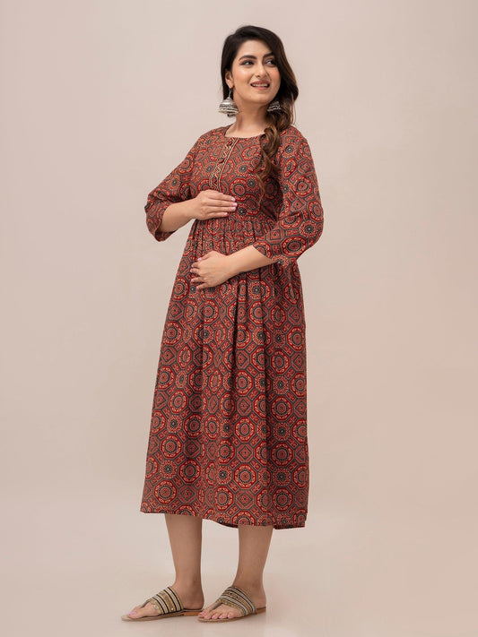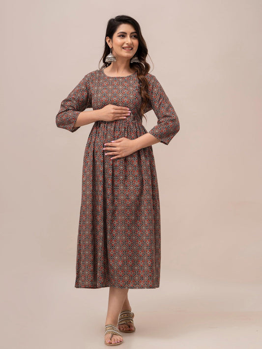 Women Floral Printed Maternity Cotton Maxi Dress - SHKUP1298