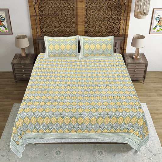 Yellow Floral Print 240 TC Cotton Double Bed Sheet With 2 Pillow Covers (SHKV1049)