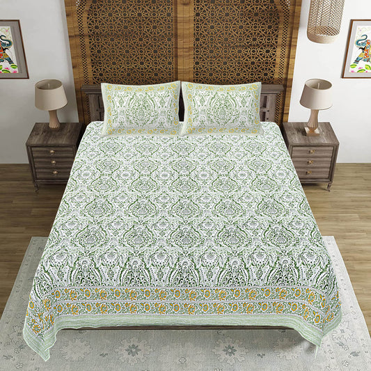 Green Abstract Print 240 TC Cotton Double Bed Sheet With 2 Pillow Covers (SHKV1052)