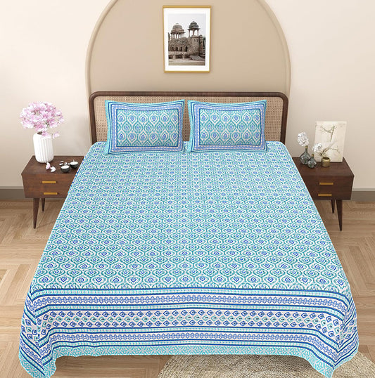 Turquoise Blue Paisley Printed Double Bedsheet With 2 Pillow Covers (ADB1450)