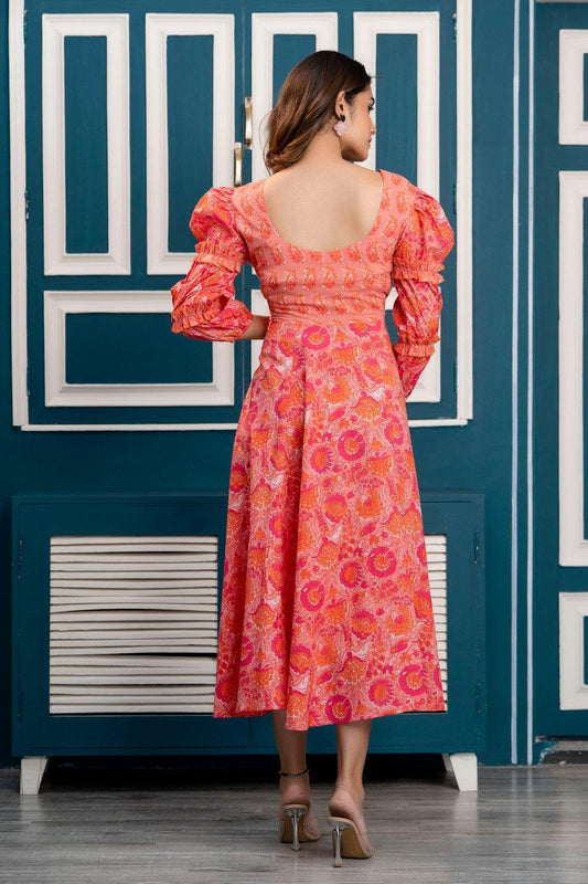 Peach Floral Print Maxi Dress with Sweetheart Neck