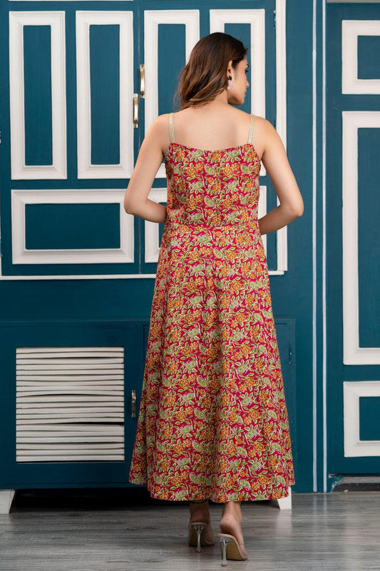 Maroon Floral Print Pure Cotton Kaftan Maxi Ethnic Dress - SHKUP1244