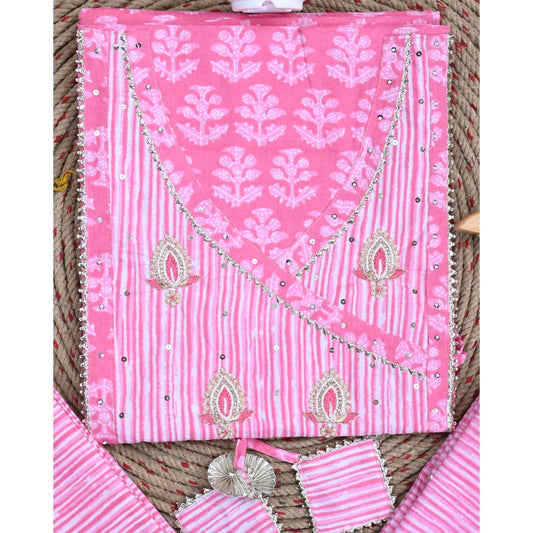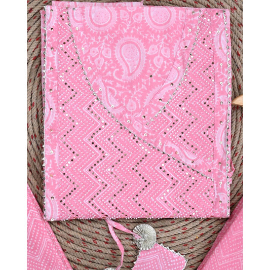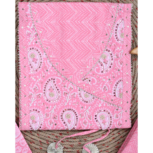 Traditional Screen Print Cotton Unstitched Suit With Cotton Dupatta (Pink-SHKS1091)