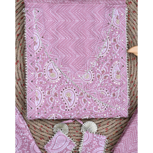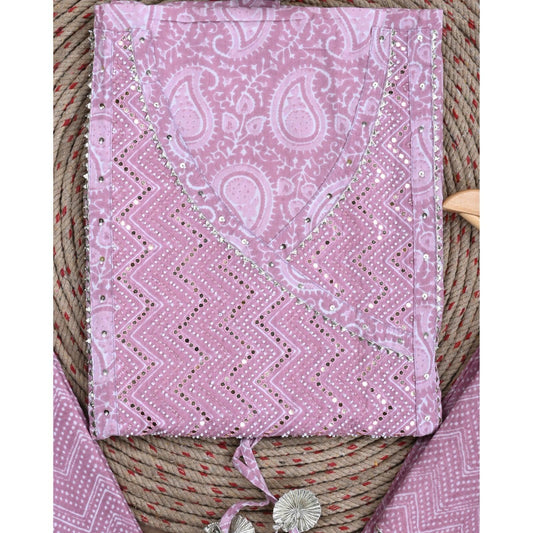 Traditional Screen Print Cotton Unstitched Suit With Cotton Dupatta (Pink-SHKS1103)