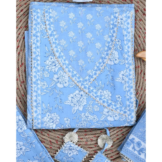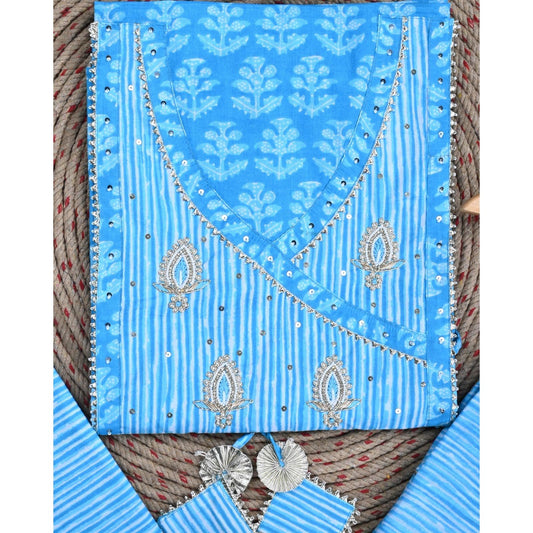Traditional Screen Print Cotton Unstitched Suit With Cotton Dupatta (Sky Blue-SHKS1092)