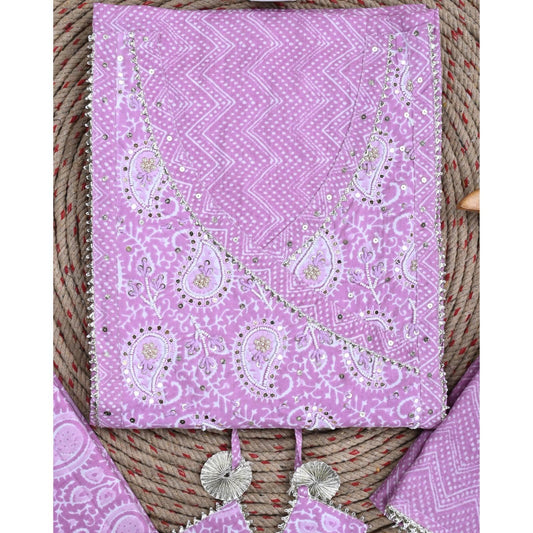 Traditional Screen Print Cotton Unstitched Suit With Cotton Dupatta (Purple-SHKS1108)