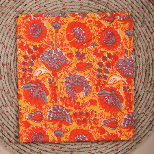 Floral Print Pure Cotton Orange Unstitched Suit With Cotton Dupatta (SHKS1130)