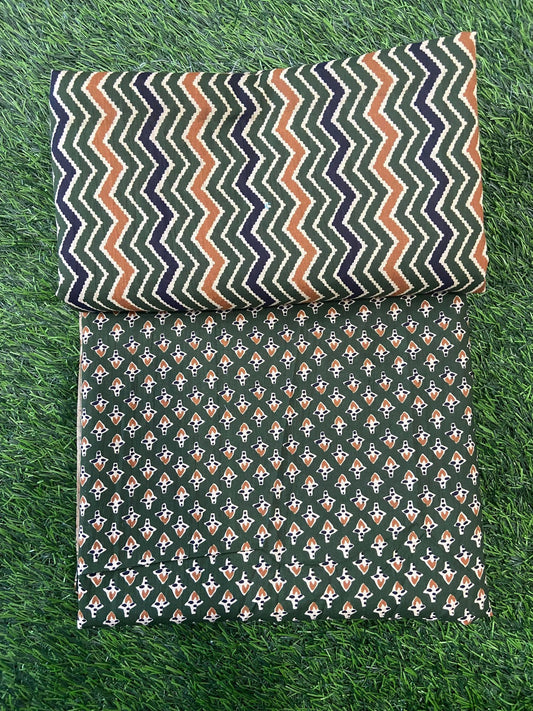 Olive Jaipuri Ethnic Printed Pure Cotton Top and Bottom Fabric (SHKSS1023)
