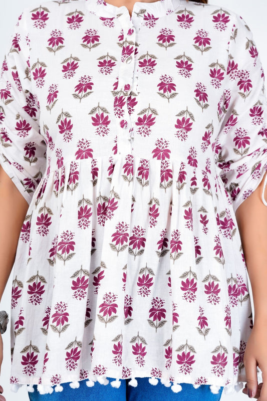 Women's Cotton Printed Peplum Top with 3/4 Sleeves – Casual Ethnic Wear
