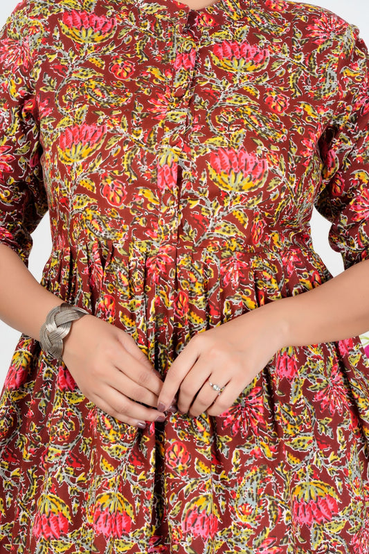 Women's Maroon Multicolor Floral Printed Cotton Peplum Top with 3/4 Sleeves – Casual & Festive Wear